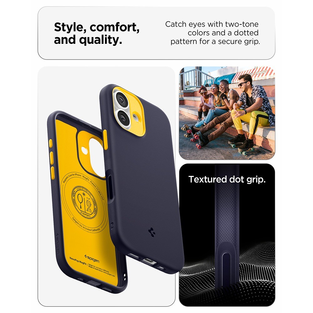 Stick ut från mängden med Nano Pop. Den mjuka silikontexturen och den livliga kontrasten gör att din telefon skiljer sig från mängden. Upplev ett tryggt grepp med prickiga handtag från sida till sida. Nu med MagFit för att låsa upp nya magnetiska tillbehör för din telefon. Se bra ut, känn dig bra – Vi har dig.