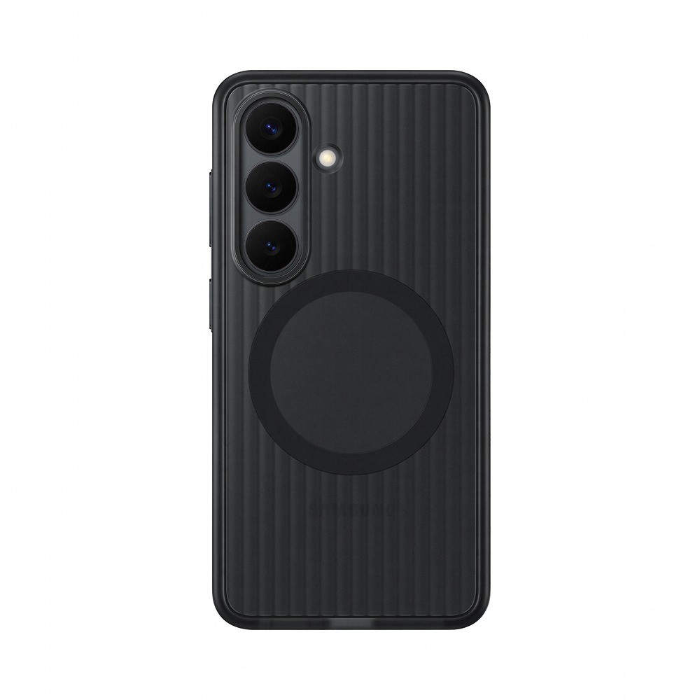 Rugged Magnet Case är byggt för att klara vardagen. Skalet absorberar stötar vid fall och skyddar mot repor och slag, med extra tålighet för upprepad användning. Det är testat till 5 gånger militärstandard (MIL‑STD‑810H) för fall, vilket ger ett pålitligt skydd runt hela telefonen. Upphöjda kanter skyddar både skärm och kamera, medan räfflade sidor ger ett säkert grepp. Ett vadderat lager på insidan ger extra stötdämpning och gör skalet bekvämt att använda. Inbyggda magneter ser till att din Galaxy hamnar rätt för trådlös laddning och gör det enkelt att fästa kompatibla magnetiska tillbehör – klicka bara fast dem.