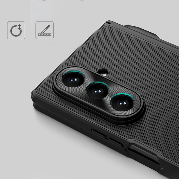 Nillkin Super Frosted Shield Fold MagSafe är ett mobilskal designat specifikt för Samsung Galaxy Z Fold 7, som kombinerar robust skydd med praktiska bekvämligheter. Tack vare den inbyggda magnetiska modulen som är kompatibel med MagSafe kan du enkelt använda magnetiska fästen och laddare. En dedikerad S Pen-plats gör att du alltid har din stylus inom räckhåll, vilket förbättrar enhetens funktionalitet utan behov av ett separat fodral eller fäste. Fodralet skyddar din telefon från repor, fall och vardagligt slitage, medan precisa utskärningar ger enkel åtkomst till portar, knappar och kameran.