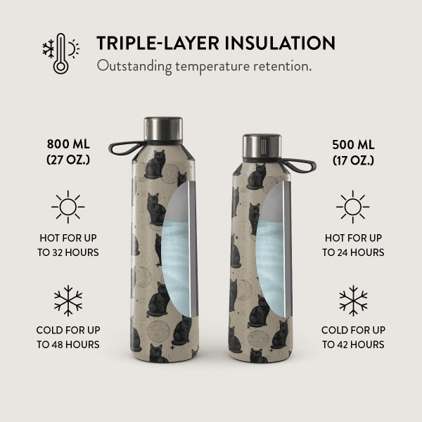 800 ml vattenflaska: Håller drycker varma i över 32 timmar och kalla i över 48 timmar.