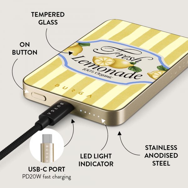 Möt den perfekta blandningen av mode och funktion. Detta eleganta kraftpaket på 5000 mAh håller dina enheter laddade och ger en touch av stil med BURGAs unika, blekningssäkra design. Det är mer än bara en powerbank; det är en statement piece som ger dina enheter ström när som helst, var som helst.