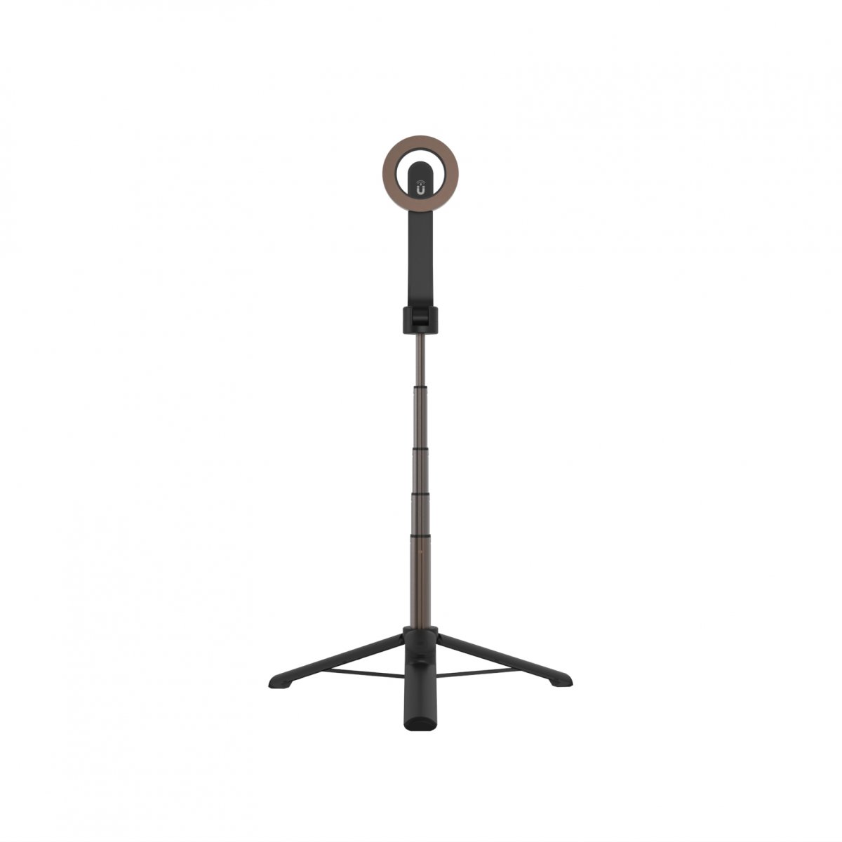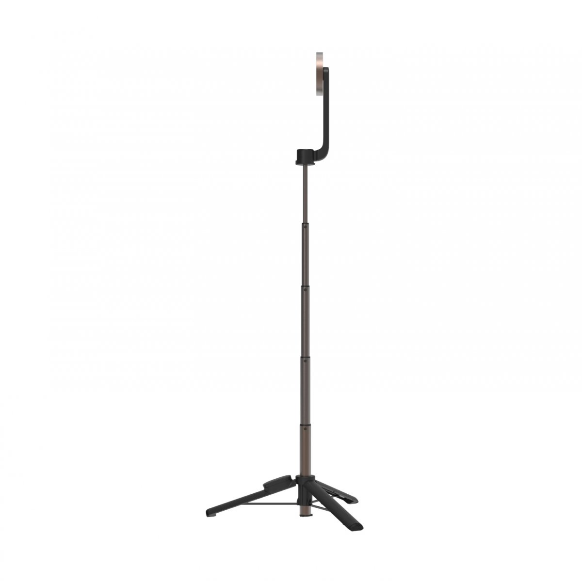 MagSafe-magneter håller telefonen säkert på plats i alla lägen, även vid plötsliga rörelser. Selfiepinnen kan förvandlas till ett stabilt stativ genom att helt enkelt fälla ut handtaget, som du kan styra tack vare den avtagbara avtryckaren med utbytbart batteri och en räckvidd på upp till 10 m.