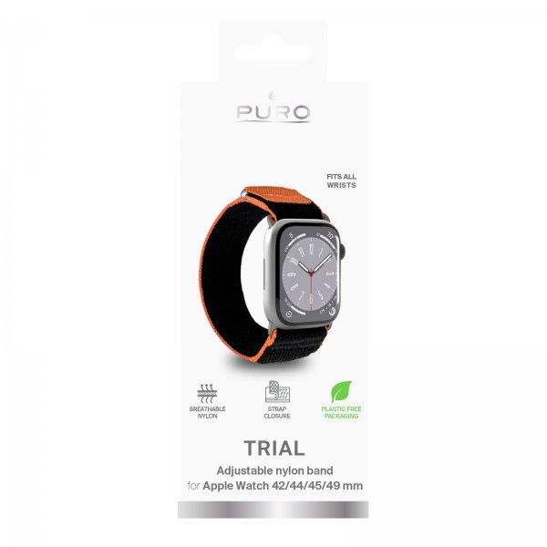 Puro Apple Watch 44/45/46mm/Ultra 49mm Armband Trial Loop Svart är ett svart armband till Apple Apple Watch 44mm, Apple Apple Watch 45mm, Apple Apple Watch Ultra 49mm och Apple Apple Watch 46mm.