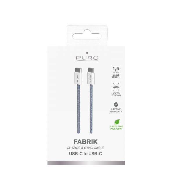 Puro's 1,5 meter långa kabel är försedd med ett robust vävt TPE-material som garanterar exceptionell hållbarhet. Dess kontakter är skyddade av förstärkta kabelklämmor, vilket ger kabeln extra hållbarhet för att klara av vardagligt slitage.