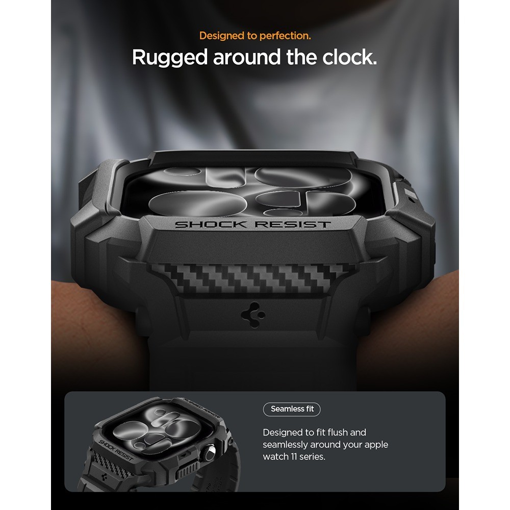 Upplev robust skydd med en elegant yta. Detta unibody-fodral och armband för smartklocka kombinerar inslag av kolfiber med ett heltäckande skydd, och håller din enhet säker utan att kompromissa med stil eller komfort. Utformad för mångsidighet passar den de flesta handledsstorlekar och säkerställer full åtkomst till alla klockfunktioner.